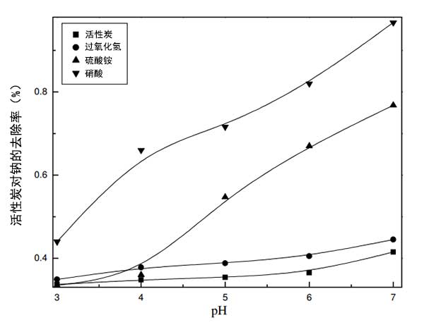 選擇用于改性活性炭表面的試劑都是氧化劑,目的是增加表面官能團的密度。從改性活性炭的化學(xué)表征結(jié)果可以看出,該任務(wù)成功實現(xiàn)。從圖1中可以看出,從活性炭和幾種氧化的活性炭動的酸度以相同的順序增加。酸度增加是由于存在羧基,酚類等酸性基團。