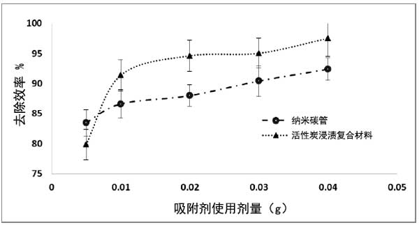 活性炭浸漬聚丙烯腈和苯乙烯材料是完全去除水中活性紅染料的好用吸附劑。采用簡單的沉淀聚合法制備了聚(丙烯腈-苯乙烯)浸漬活性炭生產(chǎn)的復合材料,在該技術應用中,制備的材料成本低,在室溫下與少量吸附劑的接觸時間較短時發(fā)生快速吸附現(xiàn)象,并且其以高效率再生更多循環(huán),這使得接觸裝置的尺寸更小,這反過來又直接影響到該技術的運行成本和生產(chǎn)能力。但是多壁碳納米管加活性炭材料的結(jié)合使用,可以在較短的吸附時間內(nèi)很快地去除水溶液中的染料。