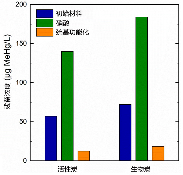 汞被對(duì)生物體具有高毒性,用于處理汞或甲基汞污染的水的方法不多,比如有吸附、混凝、過(guò)濾和生物過(guò)程。然而,到目前為止,只有吸附法在處理用于飲用的水時(shí)是比較可靠的。在接觸中與水相有關(guān)的主要形式是甲基汞,本次我們使用兩種碳基吸附材料,即活性炭和用來(lái)對(duì)照的生物炭,通過(guò)在其表面引入硫醇活性基團(tuán)進(jìn)行改性,以ppb濃度水平從類天然水中去除甲基汞。
