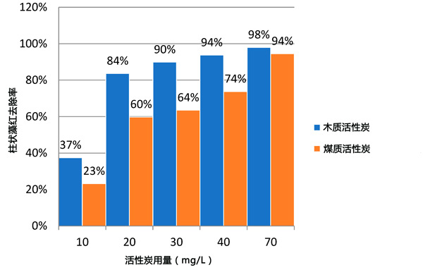 圖3:柱狀藻紅去除量與水基質中應用活性炭濃度的函數(shù)關系。