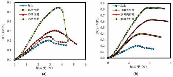 圖3:(a)活性炭試樣和(b)椰殼纖維試樣的UCS結(jié)果。