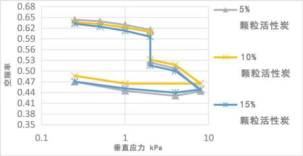 顆粒活性炭是一種比粉狀活性炭粒徑更大的碳,通常用于過(guò)濾水和空氣中的污染物等。由于其成本低、吸附效果好,被用于各種流行的處理領(lǐng)域;钚蕴恳5%、10%和15%的百分比添加到土壤中,結(jié)果表明增強(qiáng)效果如圖2所示。添加5%活性炭改善的石膏土單次塌陷試驗(yàn)結(jié)果表明,塌陷率已降低至5.55%,而添加10%活性炭處理的樣品在200kPa壓力下的孔隙比從0.610降低到0.610至0.532,導(dǎo)致崩盤(pán)可能性降低至4.7%。土樣經(jīng)15%活性炭處理后孔隙比由0.596變?yōu)?.516,坍塌潛力降至4.9%。由于具有微孔的活性炭的物理機(jī)制為良好的吸附提供了理想的環(huán)境,由于吸附材料可以同時(shí)與多個(gè)表面相互作用,活性炭吸附了一些石膏鹽,降低了塌陷潛力。