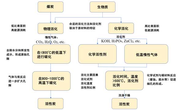 圖2:通過物理和化學活化生產(chǎn)活性炭。
