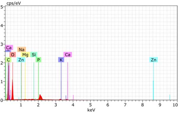 揮發(fā)物含量直接在自動(dòng)近似分析儀中測(cè)量。當(dāng)爐油樣品燃燒完全時(shí),不可燃?xì)埩粑锿ㄟ^(guò)灰分含量反映出來(lái)。在此過(guò)程中使用可承受300至400℃溫度的高溫馬弗爐。在空氣中存在氧氣的情況下,某些物質(zhì)(如水和其他揮發(fā)性元素)會(huì)燃燒,而其他物質(zhì)(包括有機(jī)分子)會(huì)蒸發(fā)。通過(guò)比較灰化前后樣品的重量可以計(jì)算出樣品中的灰分含量。固定碳的計(jì)算方法是從100中減去揮發(fā)性物質(zhì)的百分比、水分含量和灰分含量。活性炭的堆積密度是借助密度計(jì)。用能量色散X射線分析法分析活性炭的化學(xué)成分圖2;钚蕴康腅DAX分析具有由C、O、Zn等組成的元素。