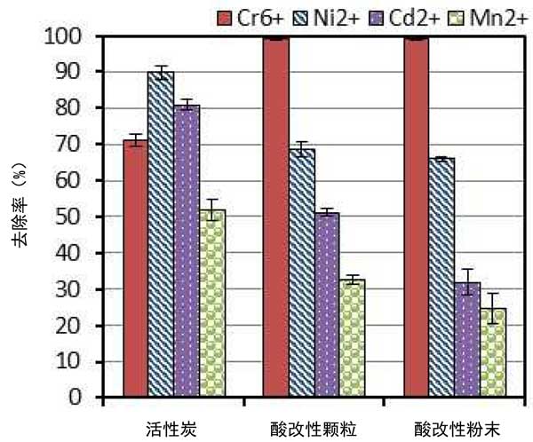 來自采礦活動(dòng)、工業(yè)和城市廢物以及垃圾填埋場(chǎng)滲濾液的重金屬對(duì)地下水和地表資源造成嚴(yán)重污染。重金屬對(duì)水的污染可能來自不同的來源。Cd2+,Cr6+,Mn2+,Ni2+被引入到水資源和環(huán)境中的主要來源是廢家用電池和充電電池、電鍍、制革工業(yè)、化肥、石化產(chǎn)品和煉油廠廢水。本文研究了使用酸改性和未改性活性炭吸附從含有Ni2+、Mn2+、Cr6+和Cd2+的季銨鹽水溶液中競(jìng)爭(zhēng)去除金屬離子的方法;钚蕴坑孟跛嵫趸,呈顆粒狀和粉末狀,并測(cè)試其對(duì)金屬離子從水溶液中的競(jìng)爭(zhēng)吸附。