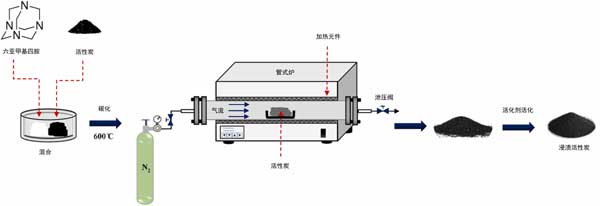 圖1:胺浸漬活性炭樣品制備示意圖。