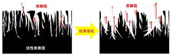 活性炭表面微孔體積與外部孔體積之比越高,解吸反應(yīng)就越困難,因?yàn)橐盐降臍怏w必須通過復(fù)雜而長(zhǎng)的通道釋放。相反,較低對(duì)應(yīng)于表面上較大體積的大直徑孔。即使吸附物被深深地吸附到活性炭表面,解吸反應(yīng)也可以沿著寬闊而簡(jiǎn)單的通道輕松快速地進(jìn)行。也就是說,活性炭表面的比率越高,解吸反應(yīng)受到的抑制程度就越大,從而導(dǎo)致吸附容量越高。