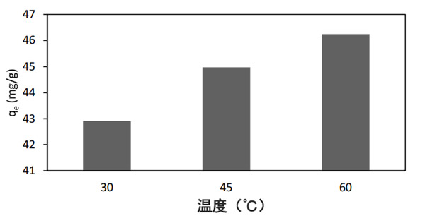溫度對吸附過程有顯著影響,因?yàn)闇囟鹊淖兓瘯?huì)引起吸附劑對特定吸附物的平衡吸附能力的變化。因此,如圖3所示,通過將溶液溫度從30-60°C改變來研究溶液溫度對染料去除的影響。隨著溫度從30-60升高,對甲基黃的吸附容量從42.9 mg/g增加到46.2 mg/g。溫度表明吸附反應(yīng)本質(zhì)上是吸熱的。眾所周知,由于溶液粘度的降低,溫度升高會(huì)增加被吸附物分子在外邊界層以及在活性炭顆粒內(nèi)部孔中的遷移率或擴(kuò)散速率。